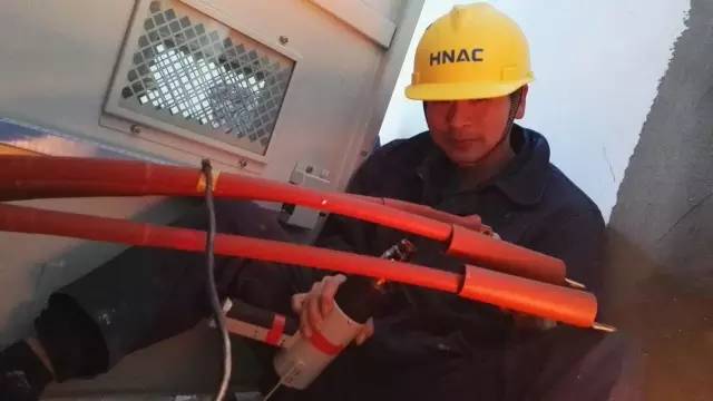 (设备安装人员进行紧张的作业)