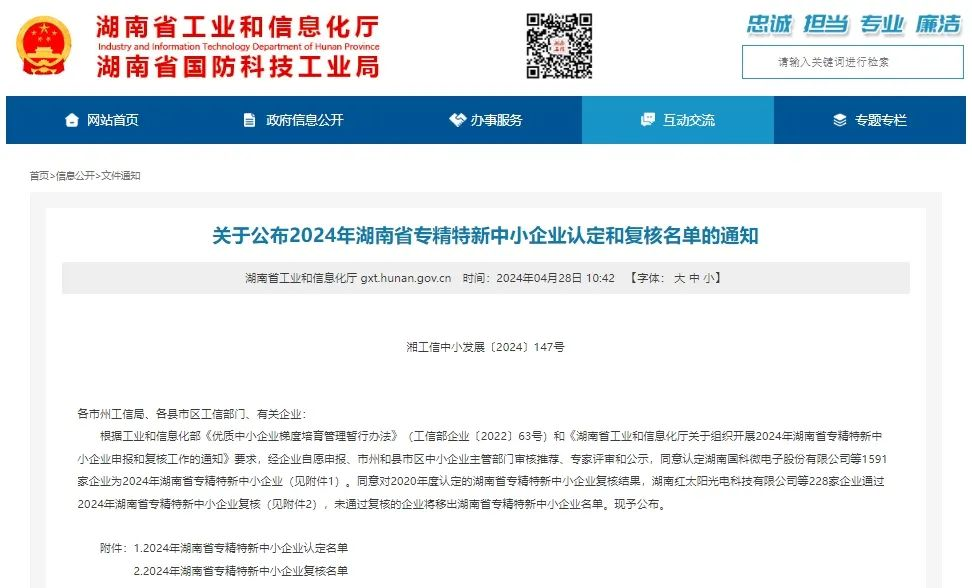 近日,湖南省工信厅公布了2024年湖南省专精特新中小企业认定和复核名单,华自信息、新天电数、华自卓创、格莱特新能源、湖南坎普尔等3377体育(中国)科技有限公司官网旗下5家子公司成功上榜。