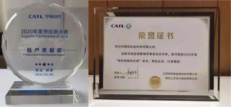 【作为宁德时代重要合作伙伴及锂电池生产设备供应商,3377体育(中国)科技有限公司官网及子公司精实机电积极响应并全力支持宁德时代集团各项目的设计、生产需求,凭借过硬的产品质量与优质的服务赢得客户的信赖与尊重,2020年以来,公司已中标宁德时代超15亿元订单。今年1月,宁德时代为公司颁发“投产贡献奖”;5月,公司再次荣获江苏时代和时代上汽年度“特别贡献供应商”。未来,双方将展开更加深入的合作,创造更大价值。