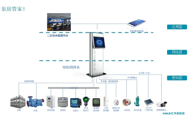 2020年,湖南省住建厅发布《DBJ43/T353-2020湖南省城镇二次供水设施的技术标准》,其中创新地提出了泵房的物联网网关概念,对物联网网关功能提出了高要求。华自永航依据该标准研发了具备边缘计算能力的物联网网关,大大降低了供水平台的运算压力,实现了水司所管辖的二次加压泵房的监控管理,缩短了加压泵房的维护管理响应时间,降低了加压泵站的设备故障率,提高水司对二供泵房管理水平,更好地保证供水安全,满足市民的用水需求。
