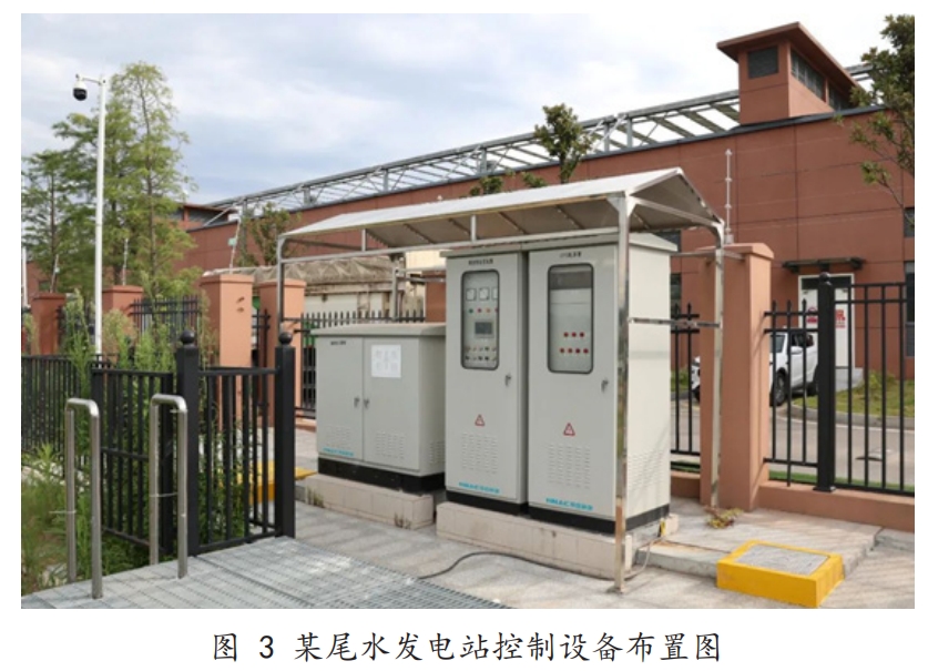 某水质净化厂日处理水量 12.5 万吨,出水水位落差 8 米,经技术改造后,水电装机容量为 85kW,年发电量 45 万 kWh。电站平均每年可节约标准煤 161.48 吨,减排二氧化碳 442.5 吨。电站结构示意图如图 2 所示,控制设备布置如图 3 所示。