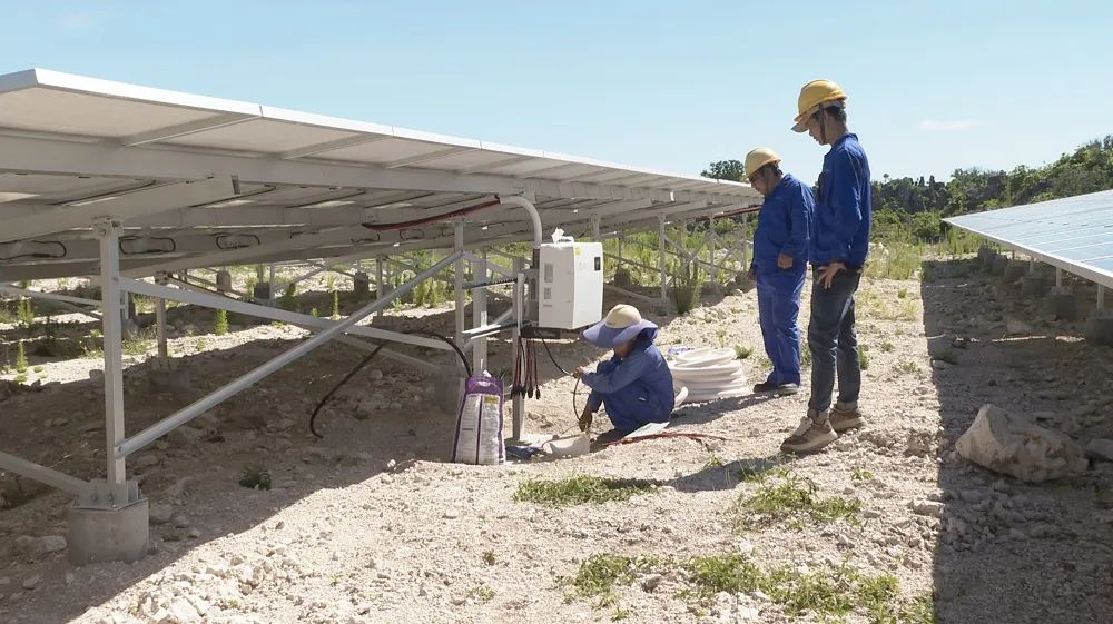 周文斌说,作为太平洋岛国,瑙鲁自然环境优美,不过资源相对匮乏,很多物品需要从其他国家进口。项目部需要通过海运等方式将物资从国内运输到瑙鲁,尤其是新冠疫情全球大流行期间,他们更是遇到了重重困难。周文斌:这个国家很多东西都是依赖进口,资源匮乏,比如像我们吃的、喝的、用的,都是依赖从各个国家进口,比如青菜、肉类,小到一瓶水,比如项目上的工程材料,连一颗螺丝钉都要从国内运过来。目前的海运周期,像我们从国内运过来的话,一般是2到3个月左右,时间比较长。空运在15天左右,主要是运输一些小零件、小配件之类的。我们2021年、2022年这段时间,因为全球疫情在这边封锁了两年左右,材料进不来,人员出不去,导致我们有时候现场待工停工时间比较长。中方建设者们克服了重重困难,将中国技术带到瑙鲁。周文斌说,在瑙鲁开展光伏发电项目,由于行业标准不同,中方建设者需要做各方面的协调工作,搭建交流合作的平台。周文斌:每个行业的标准不一样,像我们国内引用的是国标,他们这边主要引用的是澳标,这两者之间肯定是有区别的,要跟工程师、监理工程师长期沟通协调,去处理这些问题。我们还要从当地聘请一些临时工种来配合我们一起施工。跟这边人的接触,久而久之就搭建起更好的交流平台,我们合作得很愉快。